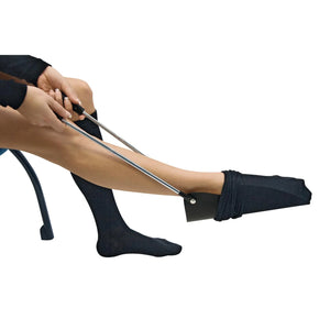 Este dispositivo para tirar de medias facilita el uso de medias a personas con movilidad reducid...