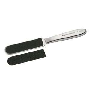 Convient pour le traitement en douceur des callosités et des grandes surfaces cornéennes. Le porte-dossier peut être stérilisé et les lames de limes sont changées pour chaque patient. Ils adhèrent solidement et sont disponibles en deux granulométries différentes.
