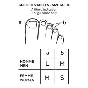 PODERM® DAMAGED NAIL PROTECTION is worn directly against the skin, on the right or left foot. The protection adapts to all types of soft shoes and comes in three sizes: S, M, L. The product is reusable. Wash the product by hand in lukewarm water and let dry. Do not use more than 16 hours per day. Do not apply to an open wound. Diabetics and people with blood circulation problems should seek the advice of a healthcare professional before use.