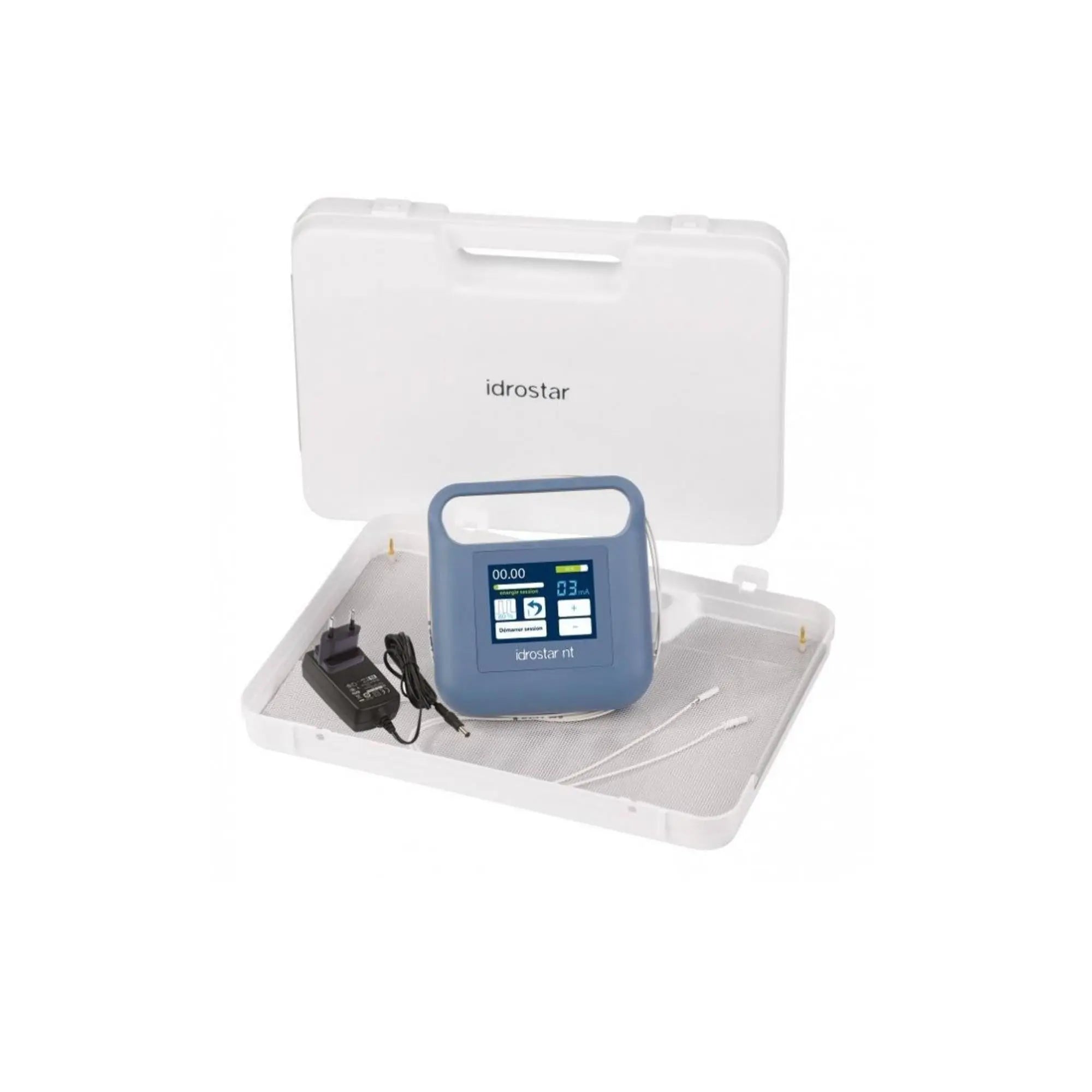 El IDROSTAR NT, la última generación de dispositivos de iontoforesis diseñada por I2M Laboratories, combina seguridad, eficacia y comodidad. Gracias a su corriente pulsada programable, se adapta a la tolerancia de cada usuario manteniendo una alta eficacia terapéutica. Su sistema de detección inteligente, su ergonomía sencilla y su moderna pantalla táctil lo convierten en uno de los dispositivos más completos del mercado para combatir la hiperhidrosis de forma sostenible, sin necesidad de medicamentos.