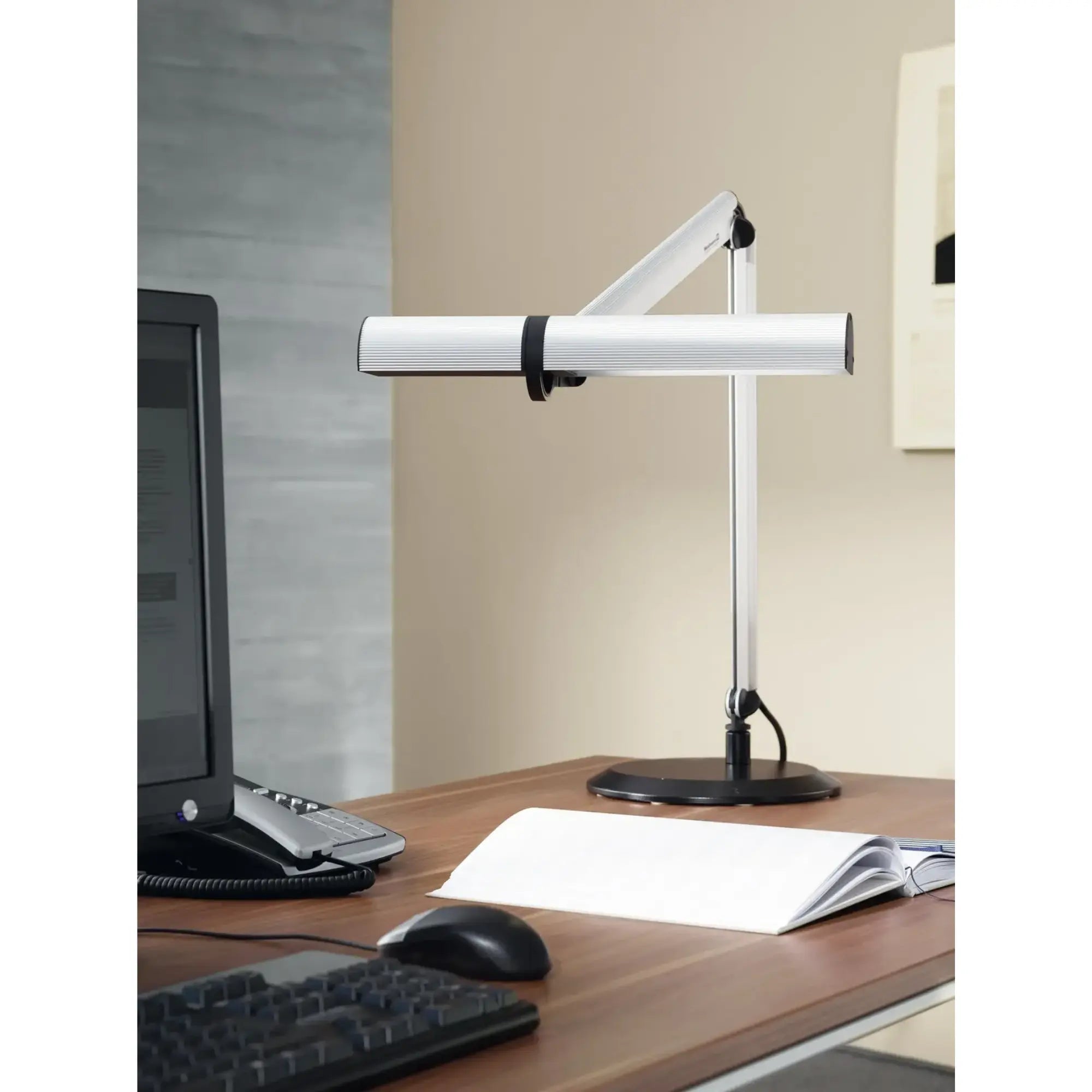 Spring-loaded joints make it easy to position the luminaire head, even with one hand. Complies with EN 12464-1 and DIN 5035 Part 8.
