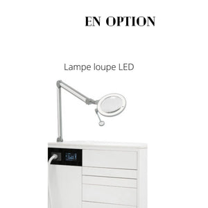 An integrated 230 volt socket allows you to connect an external device such as a magnifying glass.